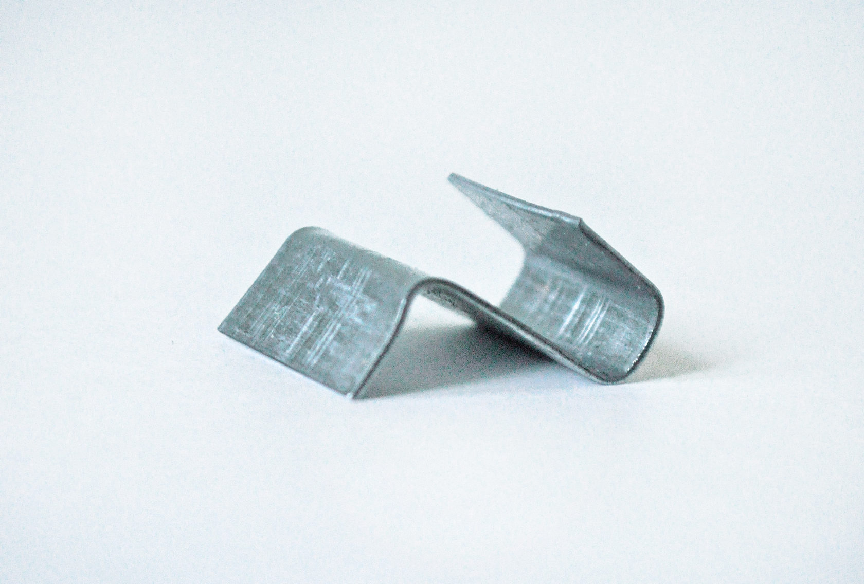 Кляммеры изготавливаются методом штамповки на специальном оборудовании. Сырьем для изготовления является пружинная сталь марки 65 Г и оцинкованная лента 0,8 ПС.